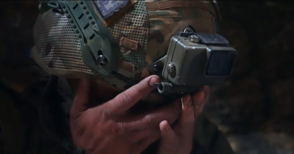 La propuesta formal del film es tan clara como arriesgada. Chernov se introduce literalmente en el frente, acompañando a un pelotón ucraniano durante la contraofensiva de 2023, y construye el relato a partir de cámaras en los cascos de los soldados. El resultado es una experiencia inmersiva, en primera persona, que borra la distancia entre espectador y combatiente. La cámara ya no observa: respira, se agacha, corre, se esconde. El cine se vuelve cuerpo.