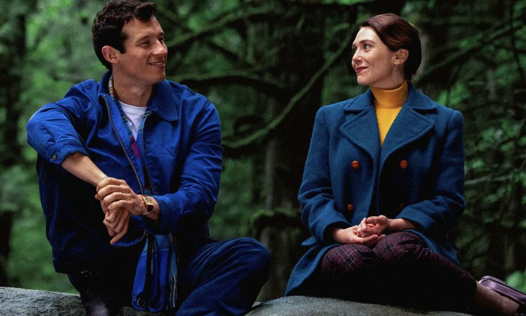 Freyne convierte el más allá en un showroom del deseo, un centro de convenciones de los años 60 donde cada alma puede elegir su eternidad ideal: un Mundo Playa, un Mundo sin Hombres, un Queer World. Esta imaginería —tan colorida como absurda— desarma el mito del cielo y lo reemplaza con una parodia del capitalismo emocional: elegir tu eternidad se parece más a comprar un tiempo compartido que a alcanzar la trascendencia. En ese escenario de neones y vendedores sonrientes, Joan (Elizabeth Olsen) se ve obligada a decidir entre dos versiones de su pasado: el amor juvenil e idealizado de Luke (Callum Turner) o la estabilidad de un matrimonio largo con Larry (Miles Teller).