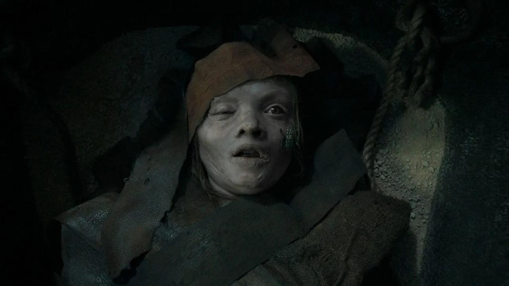 Desde su premisa —una niña desaparecida que regresa años después convertida en algo irreconocible— la película parece prometer una exploración del trauma, la pérdida y la identidad. Sin embargo, rápidamente queda claro que Cronin no está interesado en desarrollar ese conflicto desde lo psicológico o lo simbólico, sino en utilizarlo como punto de partida para una experiencia extrema, donde la narrativa cede terreno frente al impacto físico del horror.