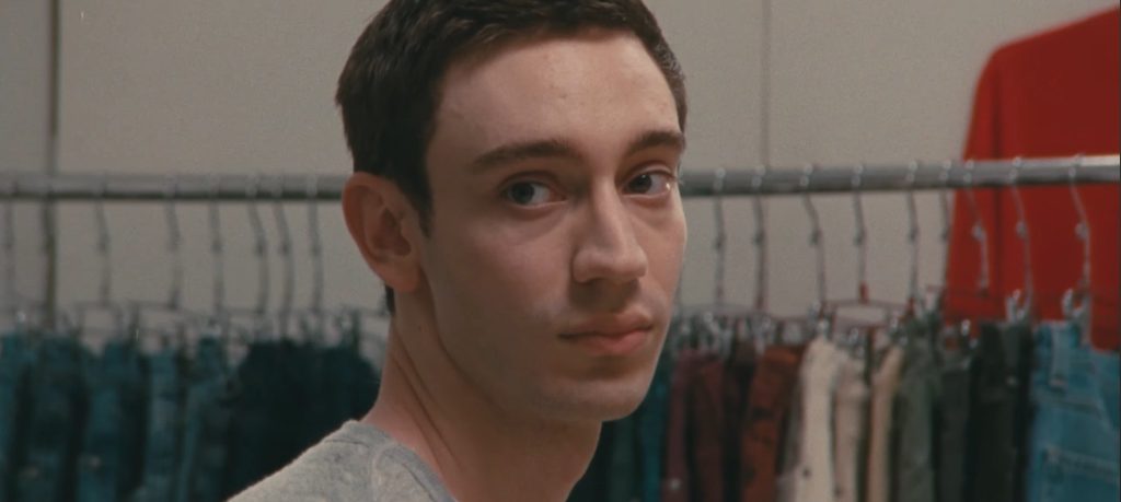 Lo más interesante de Lurker ocurre en el espacio invisible entre ambos: una zona de tensión homoerótica nunca explicita que Russell construye, pero que impregna cada gesto, cada encuadre y cada silencio. Matthew no solo quiere “ser” Oliver, también desea “poseerlo”. Lo filma, lo sigue, lo imita, lo cuida. Esa devoción obsesiva se convierte en una forma de amor distorsionado, una necesidad de pertenecer al cuerpo y a la vida del otro. Russell utiliza la cámara como mediadora de ese vínculo: los planos que alternan entre el punto de vista documental y la observación cinematográfica transforman la relación en una coreografía de miradas que se espían, se buscan y se temen. Lo queer en Lurker no se manifiesta en la sexualidad abierta, sino en la textura del deseo, en esa manera de amar que desborda los márgenes del entendimiento.