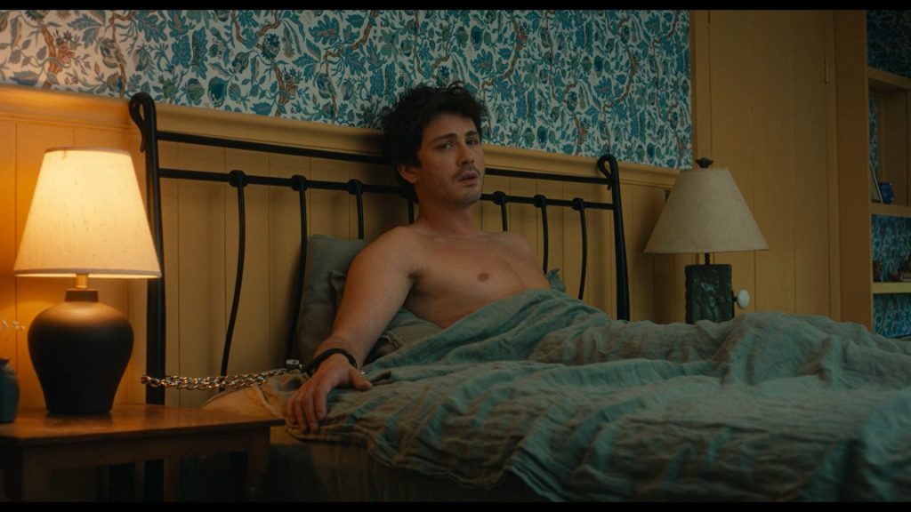 Molly Gordon, en el papel de Iris, es el corazón y el motor de la historia. Su interpretación logra captar, en un inicio, la vulnerabilidad y la necesidad de validación que caracterizan a una generación atrapada entre la ironía y el deseo de estabilidad emocional. A su lado, Logan Lerman ofrece un contrapunto más mesurado, casi apático, que complementa la dinámica de pareja con un aire de contención y misterio. La química entre ambos funciona mientras la película se mantiene dentro del terreno de la comedia romántica disfuncional, pero se diluye tan pronto como el relato se adentra en un territorio más oscuro.