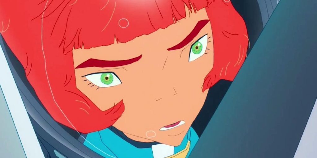 El apartado visual acompaña con decisión esta lectura. La animación rehúye de los estilos tradicionales del anime comercial y apuesta por una fealdad deliberada, de bordes duros y texturas ásperas, que convierte el mundo en un espacio incómodo. Darol, la planta alienígena que irrumpe en Japón como un árbol gigantesco de raíces óseas, no solo es una amenaza física: su presencia transforma el paisaje en algo hipnótico y siniestro, cercano a la extrañeza de Annihilation. La belleza psicodélica convive con la violencia gráfica, reforzando la idea de un mundo hermoso y hostil a la vez.
